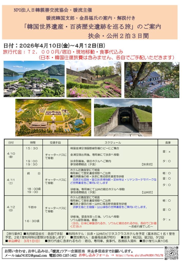 暖流主催の韓国歴史遺産の旅のご案内です。